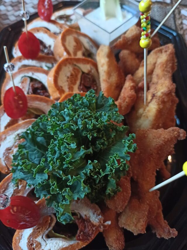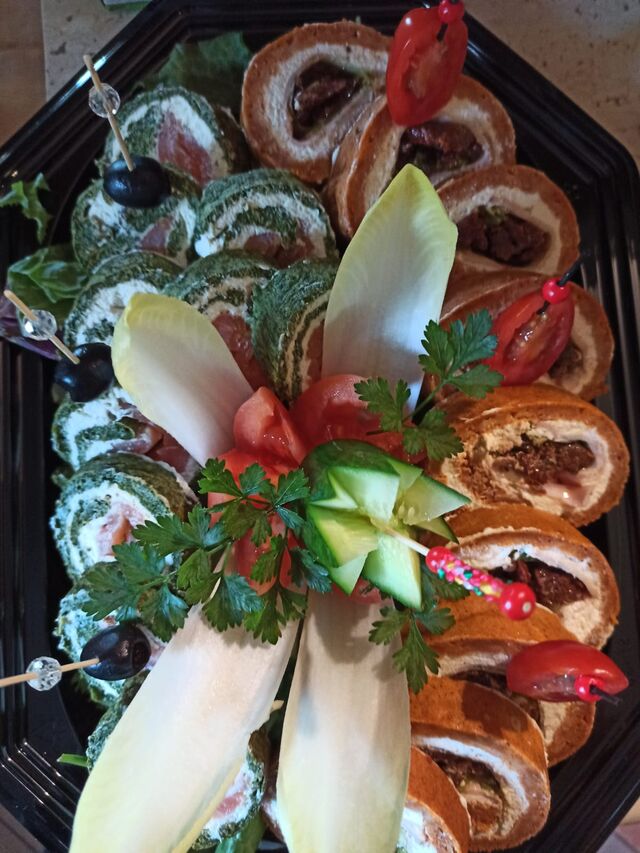 - ROLADA POMIDOROWA Z TWAROŻKIEM, SZYNKĄ, S. LODOWĄ, POMIDORKAMI SUSZONYMI - 37zł/szt